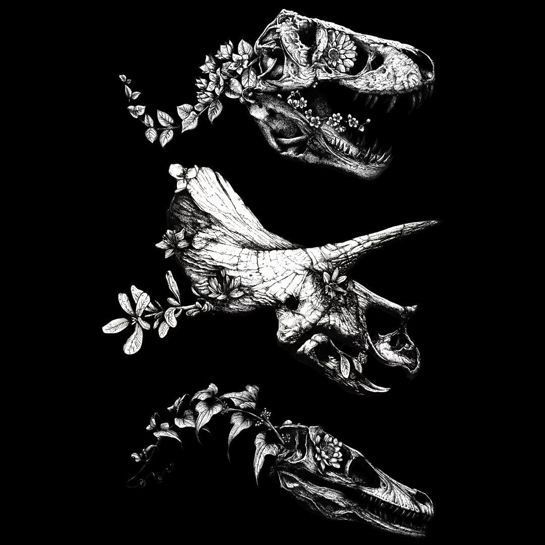 Dinosaur bones turn into flowers across a long enough timeline.