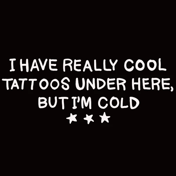 I have really cool tattoos under here, but I’m cold.
