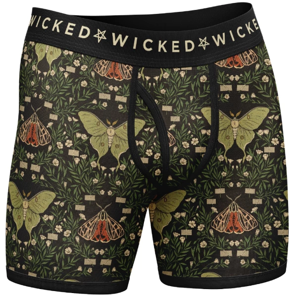 Comfy, cozy boxer briefs covered with flowers and moths. What more could you want?