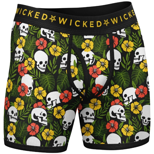 These cozy boxer briefs are covered in skulls and tropical flora. Perfect when you want to be a little goth even during the summer.