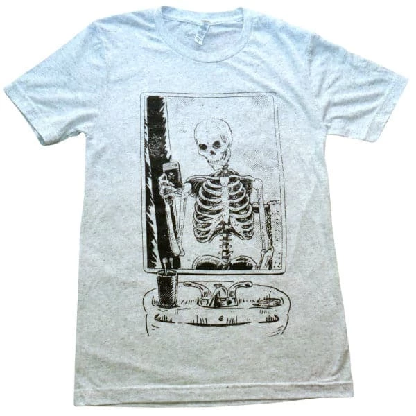 It’s a skeleton taking a selfie. It’s a skelfie.